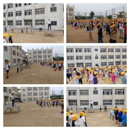 今日は運動委員会の人も前に出て、校長先生と一緒に手本を見せてくれました。