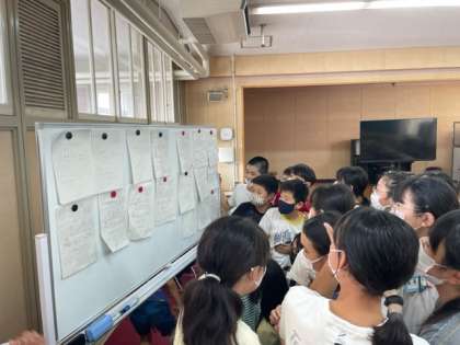 今日までに各学級で丘のスローガンについての案を相談してもらいました。