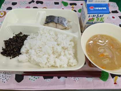 6月22日(水)のこんだては「さごしの塩焼き、みそ汁、牛ひじきそぼろ、ごはん、牛乳」です。