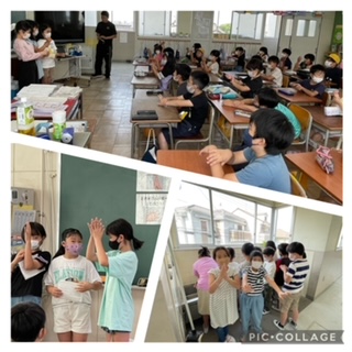 最後に、あわあわ手洗いの歌に合わせて、健康委員会の子ども達とクラスの子ども達で手洗いの6つのポーズを確認しました。