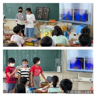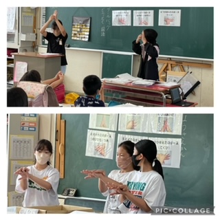 健康委員会の子ども達が、全3日間で各クラスに行き、手洗い指導をしました。
