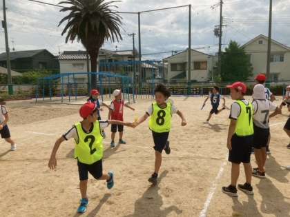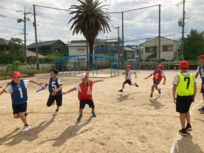 今月のスポーツクラブはリレーをしました。各学年が混ざるようにチームを組み、6年生は4年生にバトンパスを教えていました。抜いて、抜かれてのデッドヒートでした!