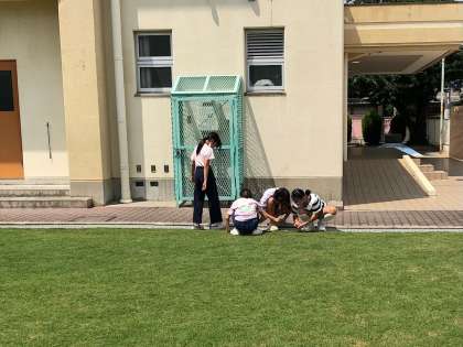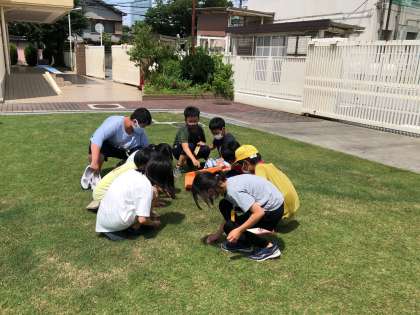 栽培委員が終わった後、校長先生が残って一人で雑草抜きをしていると、講堂の掃除が終わった5年生が手伝いに来てくれました。