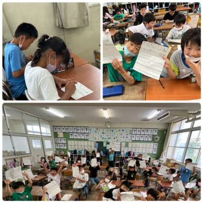 班の子、前後の班の子のいいところを見つけ、伝え合いました。