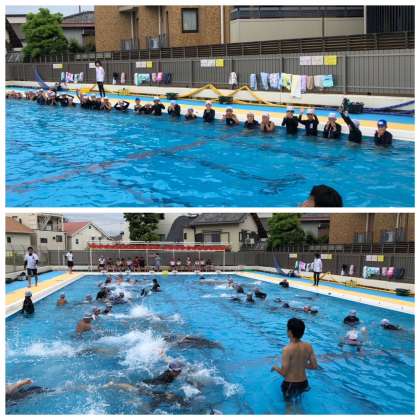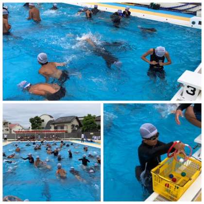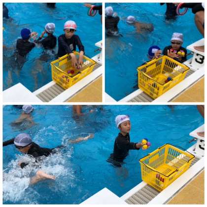 先生が宝ボールを投げ入れ、子どもたちはスタンバイ完了。