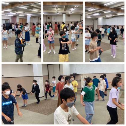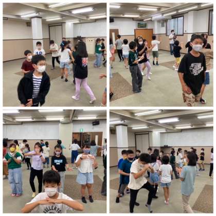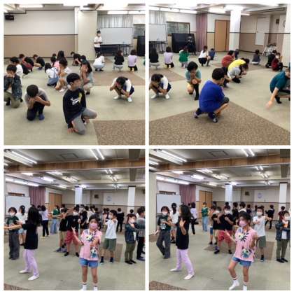 魚つかみまで時間があるので、各クラスでスタンツ練習に取り組んでいます。
