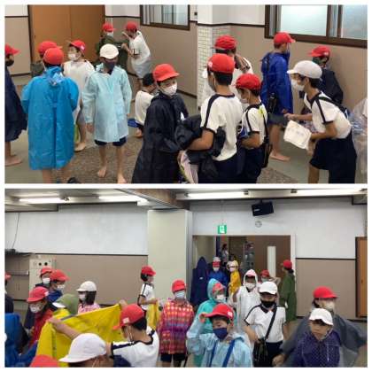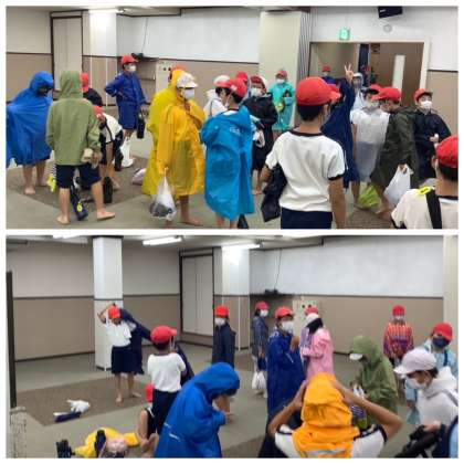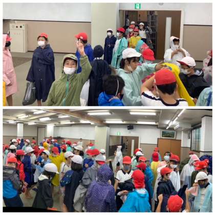雨は少し小降りになってきたようですが、カッパを着て集合です。