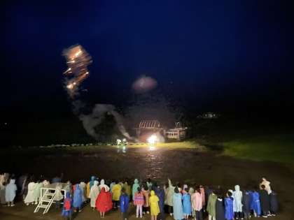 天候不良のためナイトウォークは中止しましたが、先生方の熱い思いで、雨が霧雨になったわずかな時間を利用して、花火を子どもたちにプレゼントしました。