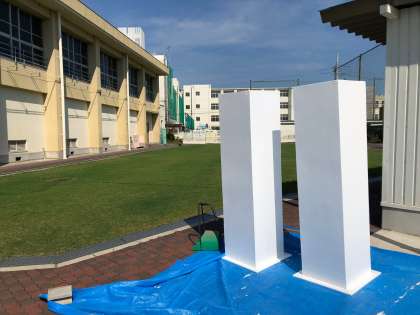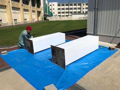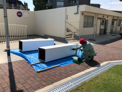 炎天下の中、管理作業員さんが黙々とペンキを塗っています。