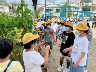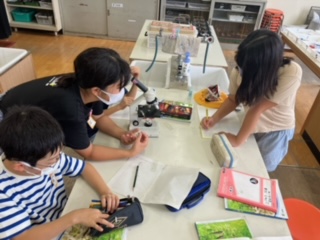 ヘチマ、ヒマワリ、ホウセンカなどの花粉を採取し、顕微鏡でその特徴を調べました。