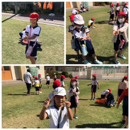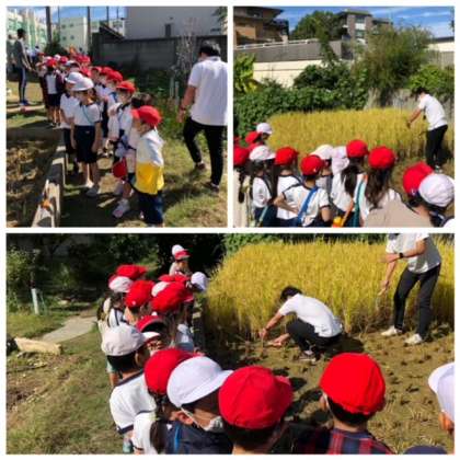 2年3組の子どもたちが、5年生の稲刈りを見学にやってきました。
