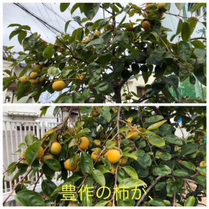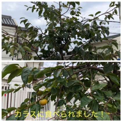 グランド南側にある柿の木、たくさんの実をつけていましたが、カラスに食べられてしまいました。とても残念です。