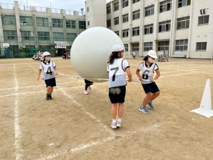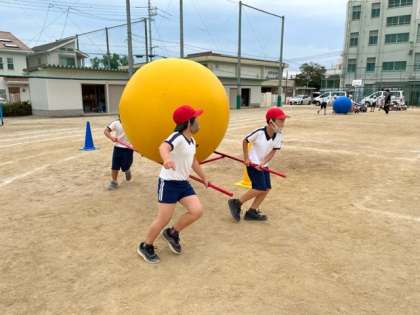 運動会で行う団体競技の練習をしています。