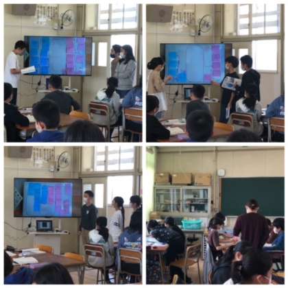 グループで話し合い、話し合ったベン図をテレビに映して発表します。