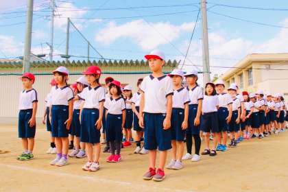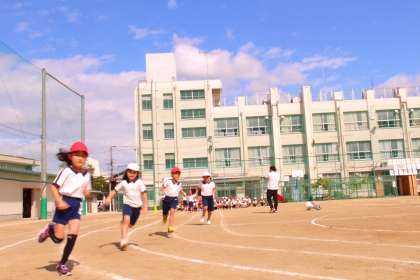 気持ちのよい秋空の下、かけっこの練習です。
