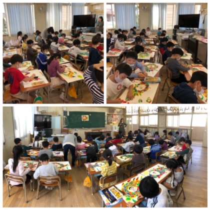 1組は、カラフルなお魚の絵をかいています。