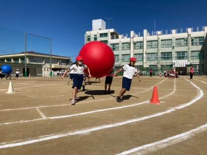 運動会までもう少し!キビキビとした動きで並んだり、大玉を運んだりと、気合が入っているのがわかりました。