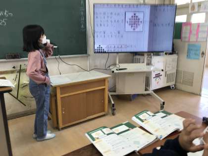 ペンギンコースでは、自分の考えを書画カメラにうつし、みんなの前で発表しました。工夫して数の求め方を考えることができました!