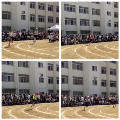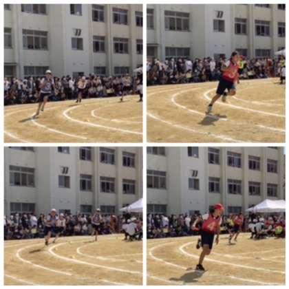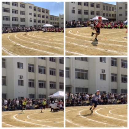応援席からの大きな声援を受けて、力いっぱい走ります。