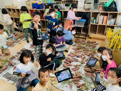 先週掘ったサツマイモを観察、撮影し、発表ノートにまとめました。