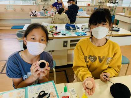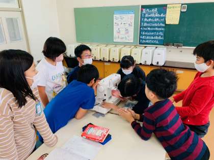 先生に教わりながら、ミシンに挑戦している児童もいました。