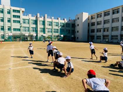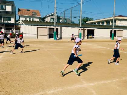 バトンの持ち方、渡し方を練習し、リレーに取り組みました。