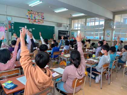 歯科衛生についての認識や健康な歯を守ることを目的に歯科衛生士さんによるフッ化物洗口の授業が行われました。