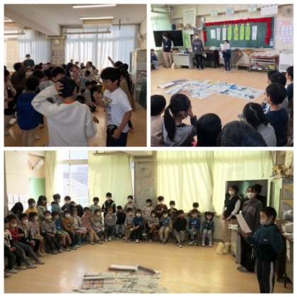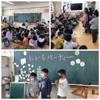 今日は、1年生を教室に招いて「さつまいもパーティー」を開催しました。