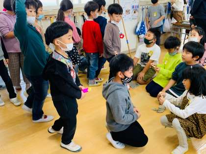 パーティーの後、午後からの就学児健康診断に向けて、教室の片付けや普段より丁寧な掃除を始めた子ども達。