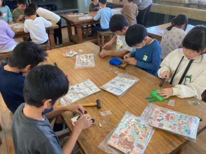三年生 図工「釘打ちトントン」