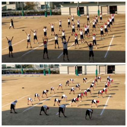 11月16日(水)2時間目、準備運動でラジオ体操第一をしています。