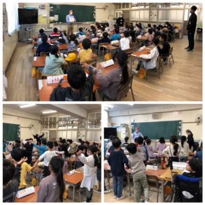阿倍野区役所がゲストティーチャーを派遣して、小学校1年生に英語を体験してもらおうと企画してくださった英語体験授業です。