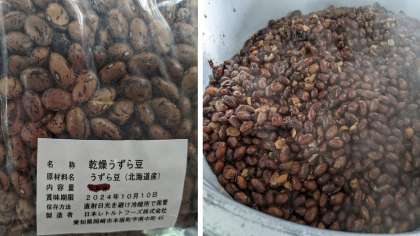 うずら豆はインゲン豆のなかまです。豆の模様が鳥のうずらや、うずら卵に似ていることからこの名前が付きました。じっくり煮て、やわらかく食べやすく仕上げています。