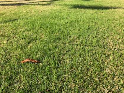 茶色い高麗芝が、きれいな緑色のじゅうたんになってきました。