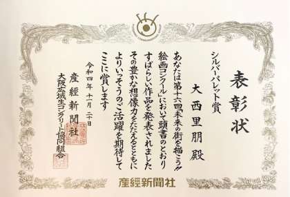第16回「未来の街を描こう!絵画コンクール」でシルバーパレット賞を受賞しました。素敵な絵画がパネルになったものも賞状と一緒に授与されました。おめでとうございます。