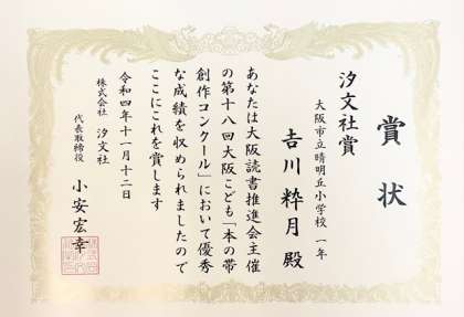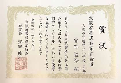 第18回大阪こども「本の帯創作コンクール」で、素晴らしい賞に輝きました。