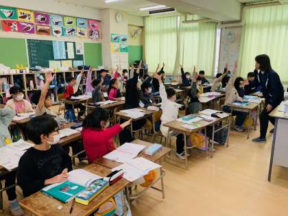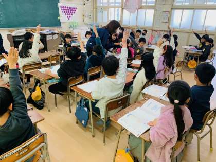 ほとんどの児童が挙手をしており、積極的な姿勢がすばらしいです!