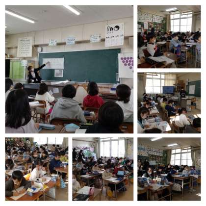 5年生は、1組が英語の学習、2組が「大造じいさんとガン」の音読発表会、3組は社会科の学習をしていました。