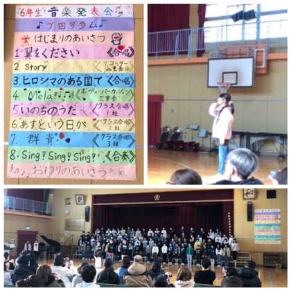 12月13日(火)5時間目、6年生の学習参観は、講堂での音楽発表会です。