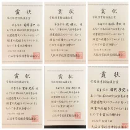 ◆第68回大阪市青少年読書感想文コンクール