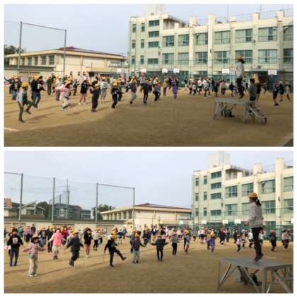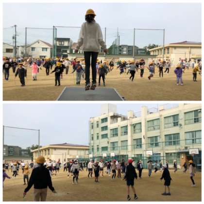 今日から、2時間目後の休み時間を利用して、めざせ!ピョンピョンマスター!がはじまりました。運動委員会の児童がリードしながら、音楽に合わせてリズミカルになわとびをすることで、ジャンプ力や体力の向上を図ります。