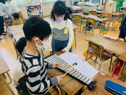 冬休みに鍵盤ハーモニカで練習した曲を、色々な楽器で演奏しました。