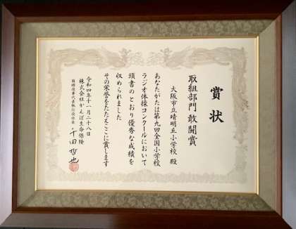 第9回全国ラジオ体操コンクール 取組部門「敢闘賞」を受賞しました!