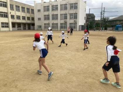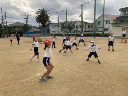 ポートボールの試合をしました。チームに分かれて作戦を考えていました。ゴールを積極的に狙い、パスを繋げていました。