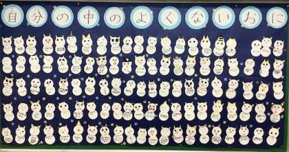 保健室前の掲示板に、2年生の「自分の中のよくないおに」が掲示されています。