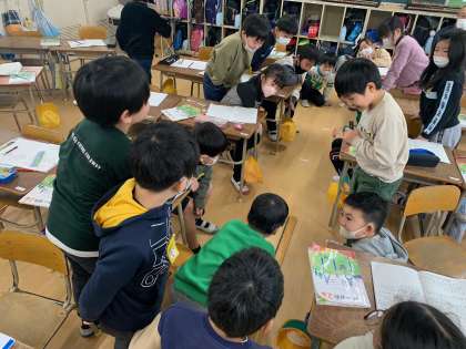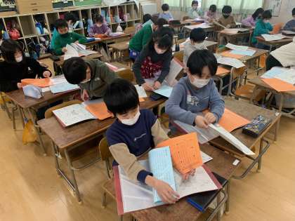 1mものさしを使って教室の縦の長さをはかったり、掃除を隅々までがんばったり、阿倍野図書館見学に向けて、図書館からいただいた資料を読んだりしました!