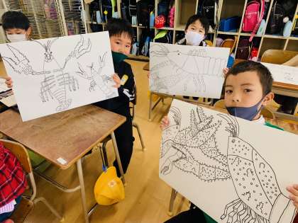 画用紙いっぱいに大きく描くことはとても難しいですが、子ども達は一生懸命に描いています!