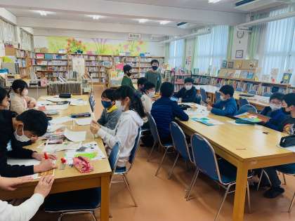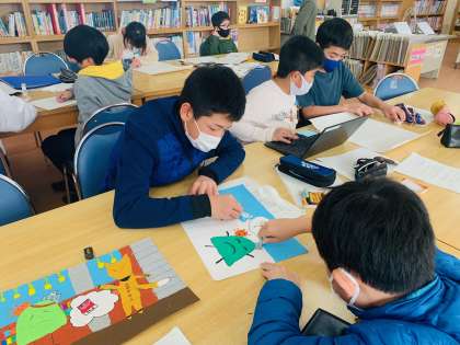 この1年間の図書委員会の活動をふりかえり、模造紙にまとめました。
