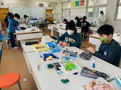 5、6年生が優しく教えてくれていたので、4年生も、玉結びや玉止めが少しずつできるようになってきました。