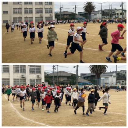 寒さを吹き飛ばすように、子どもたちはグランドを走ります。
